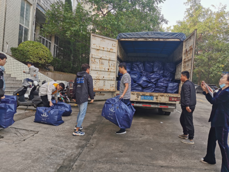 (通讯员 王现丽)资产公司积极发挥桥梁纽带作用,通过与河南省纤维检验协会沟通并对接相关企业,积极联系社会资源为我校开展金秋助学活动。9月24日上午,河南省纤维检验协会会长陈智勇和高科旭能实业有限公司施洁美总经理来校,为我校捐赠100套春舒宝床上被褥六件套,用于资助我校2020级家庭参加抗疫的,或者因疫情、灾情等导致经济困难的学生。